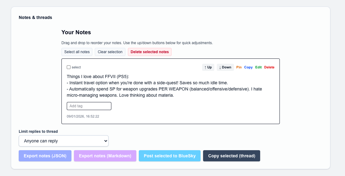 - Primary reason to adopt should be the ability to compose notes that you can post directly to BlueSky with an app password.